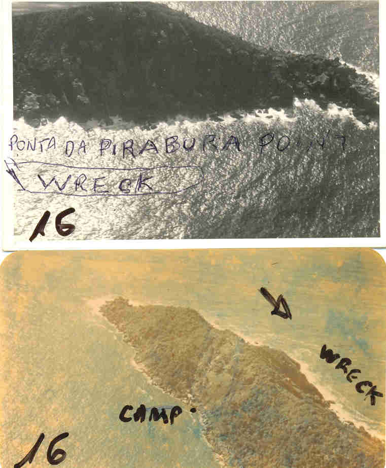 11-3 fotos da ponta da Pirabura. O Principe bateu no lado do mar aberto rasgando o casco nas pedras e afundando rapidamente